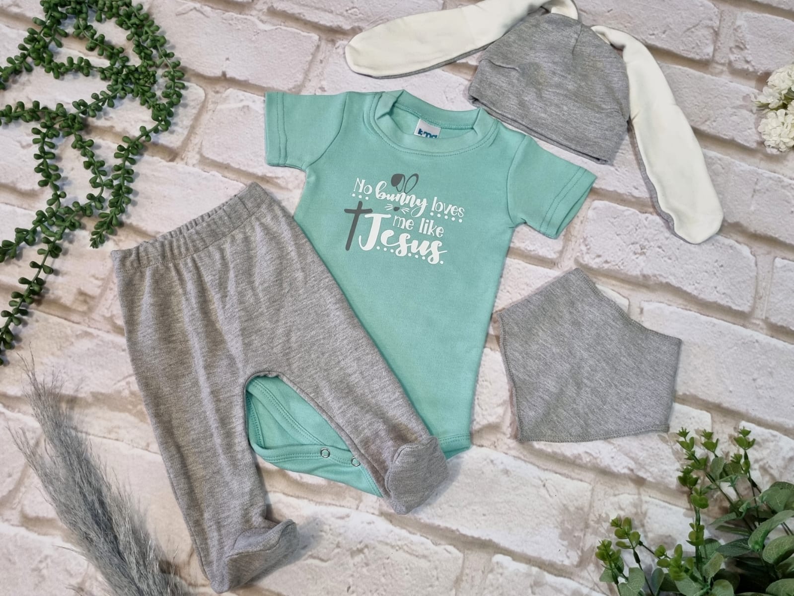 Be the first to review “No bunny loves me like Jesus Vest Footed Tights and Bunny Beanie set” Cancel reply