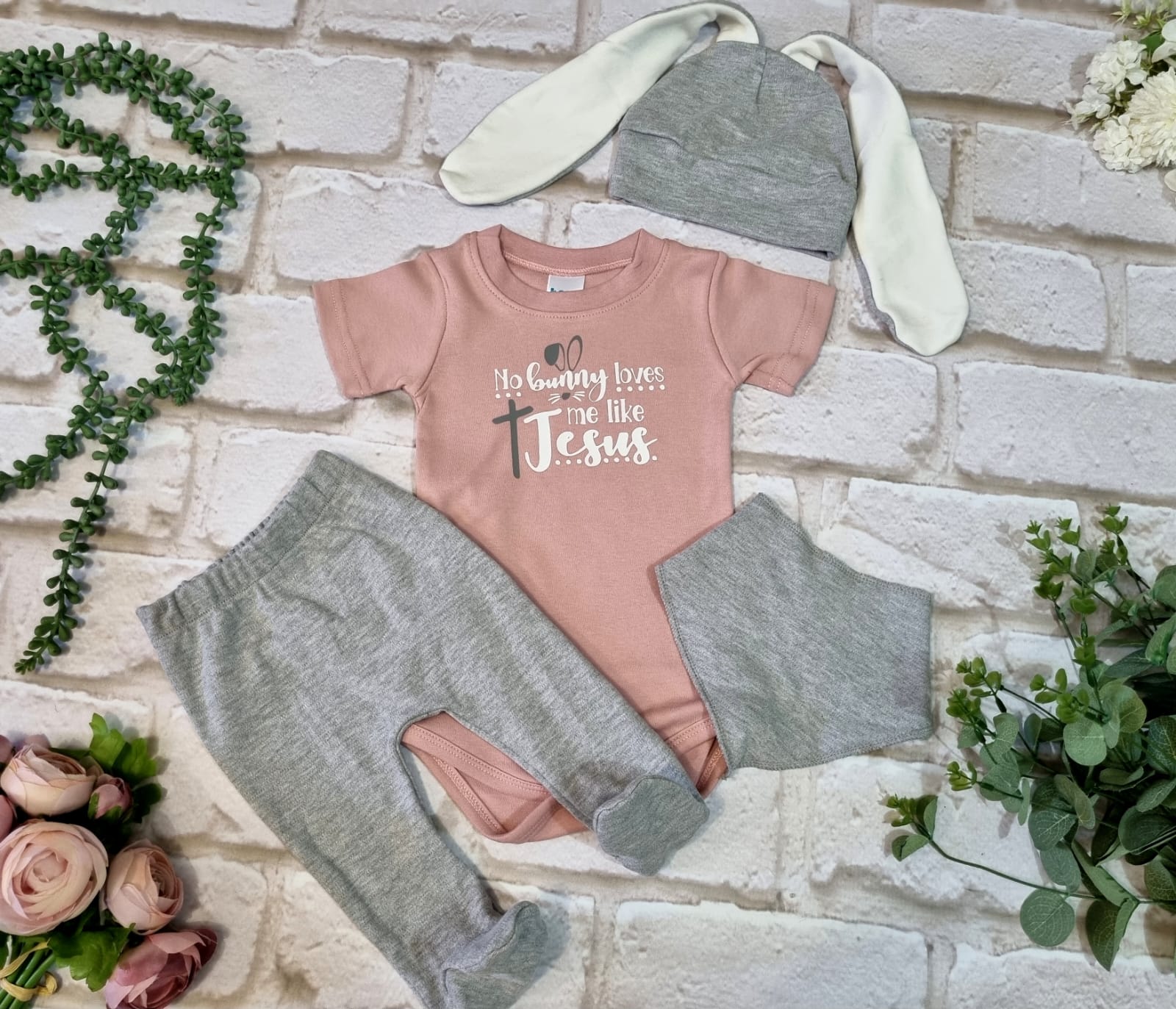 No bunny loves me like Jesus Vest Footed Tights and Bunny Beanie set